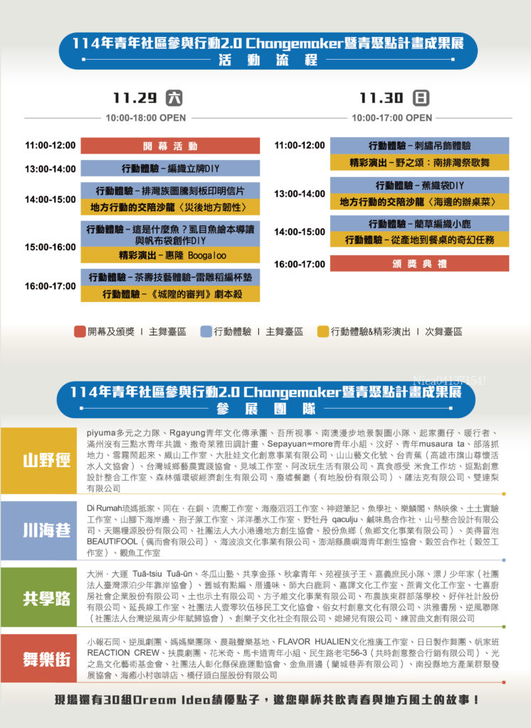 【活動報報】教育部青年發展署舉辦114年青年社區參與行動2.0 Changemaker暨青聚點計畫成果展「青年居久屋」