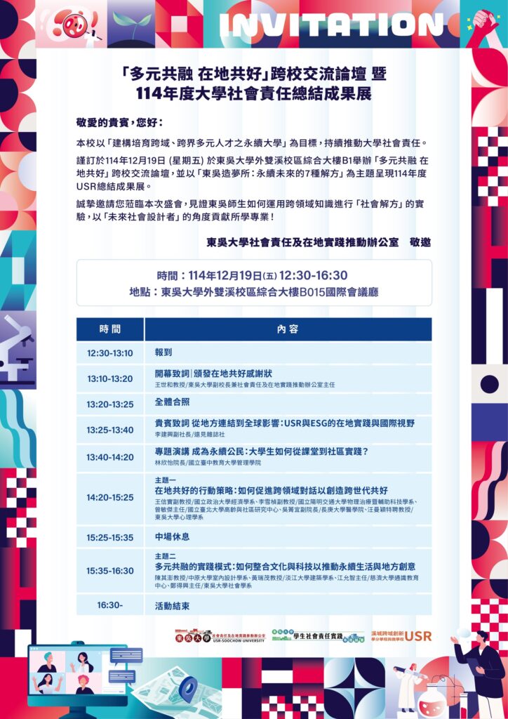 【活動報報】東吳大學舉辦「多元共融 在地共好」跨校交流論壇暨大學社會責任總結成果展