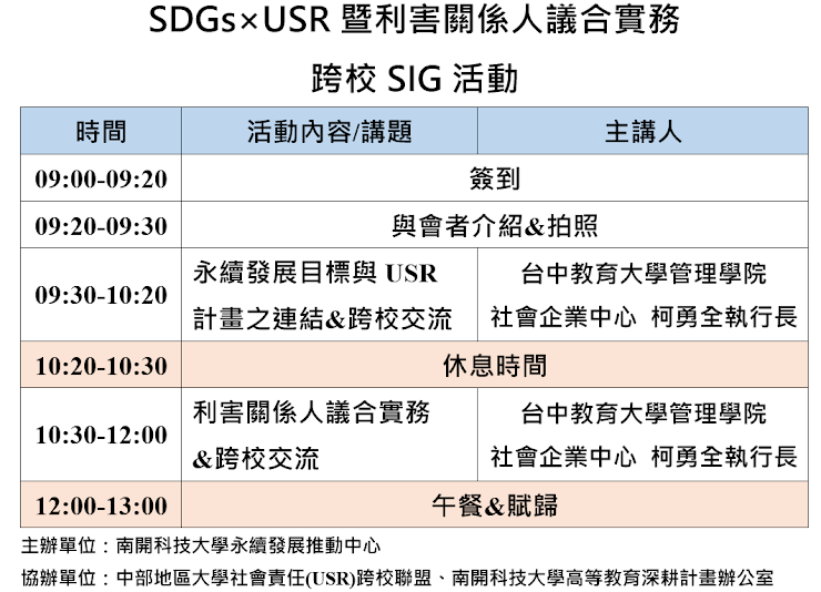 【活動報報】南開科技大學舉辦「114年度SDGs×USR暨利害關係人議合實務-跨校SIG活動」