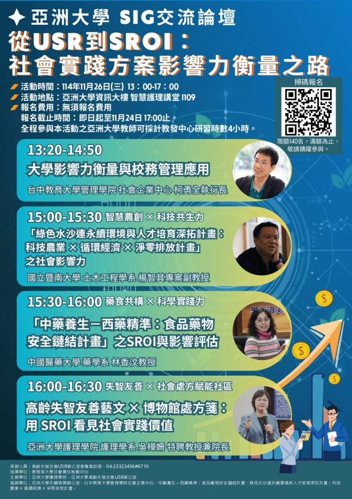 【活動報報】亞洲大學舉辦「從USR到SROI:社會實踐方案影響力衡量之路」SIG交流論壇