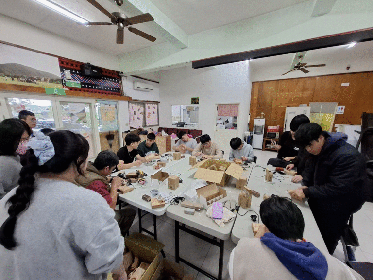 首先金岳部落社區深度部落導覽,由在地青年解說員帶領,步行約1.5小時,了解部落遷徙、舊部落故事與泰雅文化,第一站由解說員介紹金岳社區地圖,第二站參觀原民傳統房屋,第三站瞭解「莎韻之鐘」背後故事起源,第四站參訪原民當地生活故事與背景。 下午課堂由花蓮農工謝仁壽老師及林瑞祥老師教學推動原民部落國產材活化在應用,帶領學員認識原住民以及非原民木工工具教學,續以實作體驗指導各學員國產木材的木餐具製作、國產材的暖心燈製作,每個學員今日收穫滿滿。
